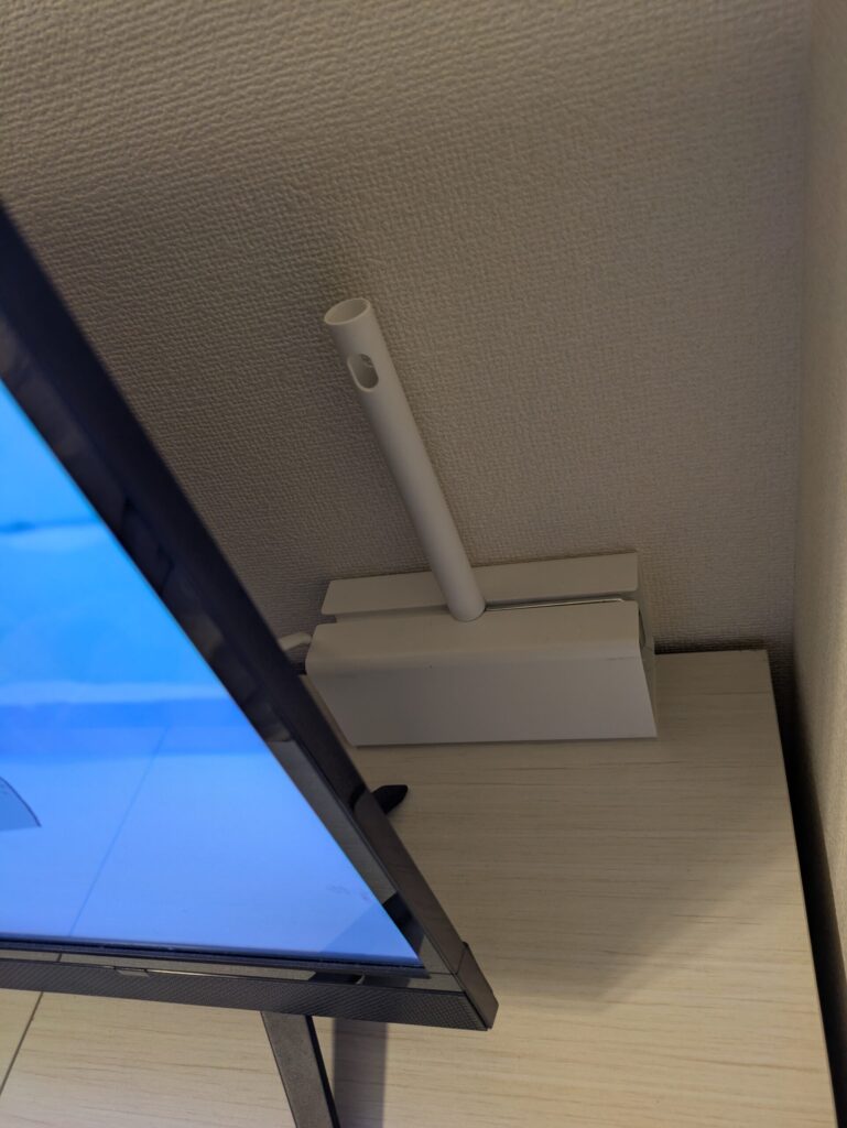 テレビの後ろに、コロコロとウェーブを置いています。気づいたときにすぐ掃除できるので、汚れをためにくくなりました。